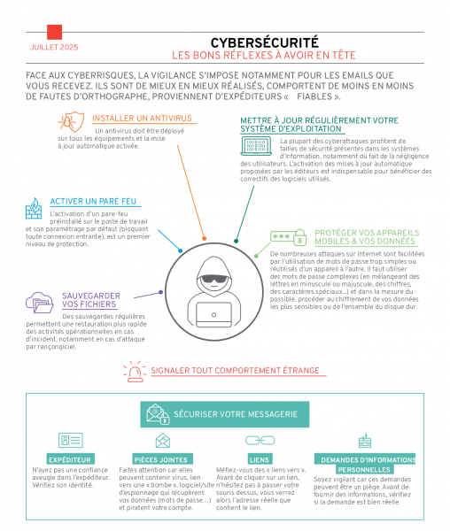 FACE AUX CYBERRISQUES, LA VIGILANCE S'IMPOSE NOTAMMENT POUR LES EMAILS QUE VOUS RECEVEZ. ILS SONT DE MIEUX EN MIEUX RÉALISÉS, COMPORTENT DE MOINS EN MOINS DE FAUTES D’ORTHOGRAPHE, PROVIENNENT D’EXPÉDITEURS « FIABLES ».